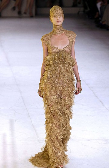 This was a show aimed at women who don't have the words "shy" and "retiring" in their vocabulary. We rather like it when the clothes didn't look like you needed the strength of a weight lifter to wear them. We loved the Michael Jackson-inspired wide shoulder biker jackets with massive gilt studs – but as in the past we would have wanted it in shiny black, the designer sent one in baby pink down the runway. Not exactly everyday-life-friendly, but a girl can dream..